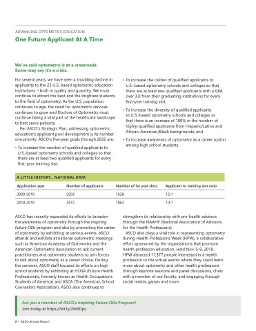 Per ASCO’s Strategic Plan, addressing optometric education’s applicant pool development is its number